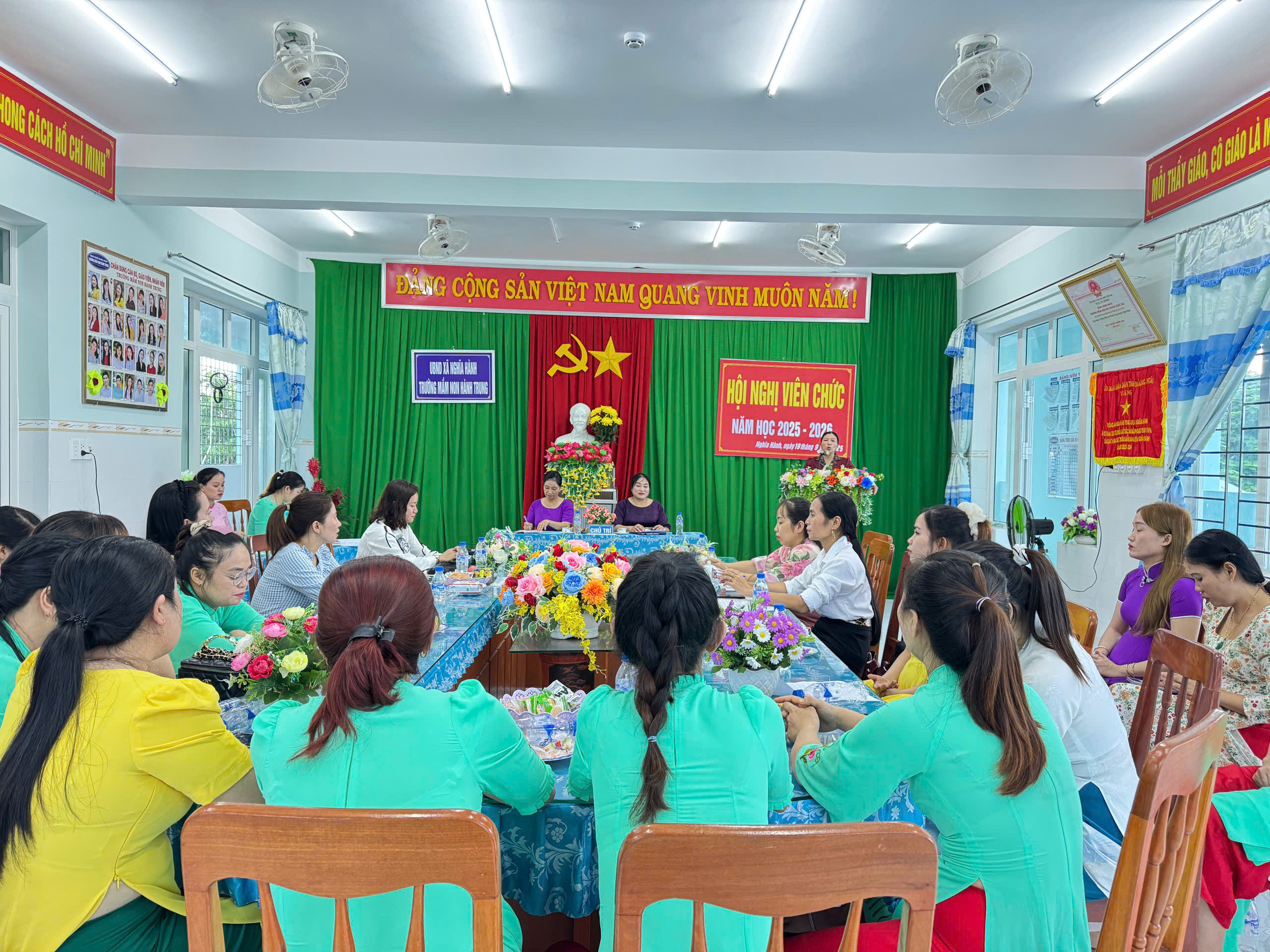 Hôm nay vào lúc 14h00′ ngày 19/9/2025, tại phòng họp trường Mn Hành Trung, Hội nghị công chức, viên chức đầu năm học 2025–2026 đã được tổ chức thành công với sự tham dự đầy đủ của toàn thể cán bộ, giáo viên, nhân viên trong nhà trường.